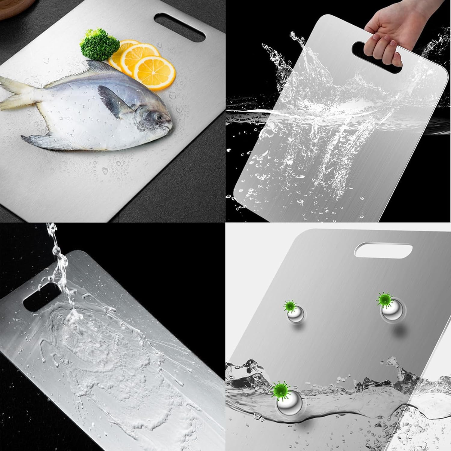 - VERSATILITY: WEEDOO steel chopping boards are designed to handle a wide variety of food preparation tasks, making them a versatile addition to any kitchen. Whether you're slicing, dicing, chopping, or even tenderizing meat, these boards provide a sturdy and reliable surface. Their non-porous nature makes them suitable for handling different types of food, from raw meat to vegetables, without the risk of cross-contamination. This versatility ensures that the board can adapt to various culinary needs, making it a practical tool for both everyday cooking and more complex recipes.